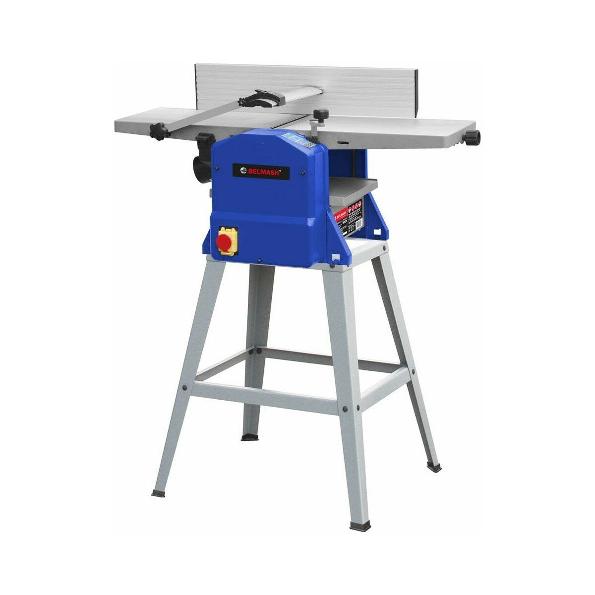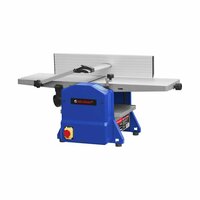 Модель имеет настольное исполнение. Корпус сборный, выполнен из стали. Верхние столы предназначены для строгания/фугования заготовок. Нижний рабочий стол –для рейсмусования. Строгальные и рейсмусовые столы, параллельный упор выполнены из алюминия. Угол наклона упора регулируется. Нужная высота настраивается с помощью рукоятки. Вал оснащен двумя ножами. Удаление отходов резания осуществляется через съемный кожух. Имеется токовая защита. Размер рейсмусового стола 380×254 мм.