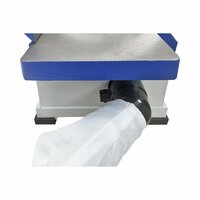 В данной модели имеется собственная система стружкоудаления: крыльчатка и мешок-стружкосборник на 70 литров. Плюсы: чистота в мастерской и экономия бюджета.