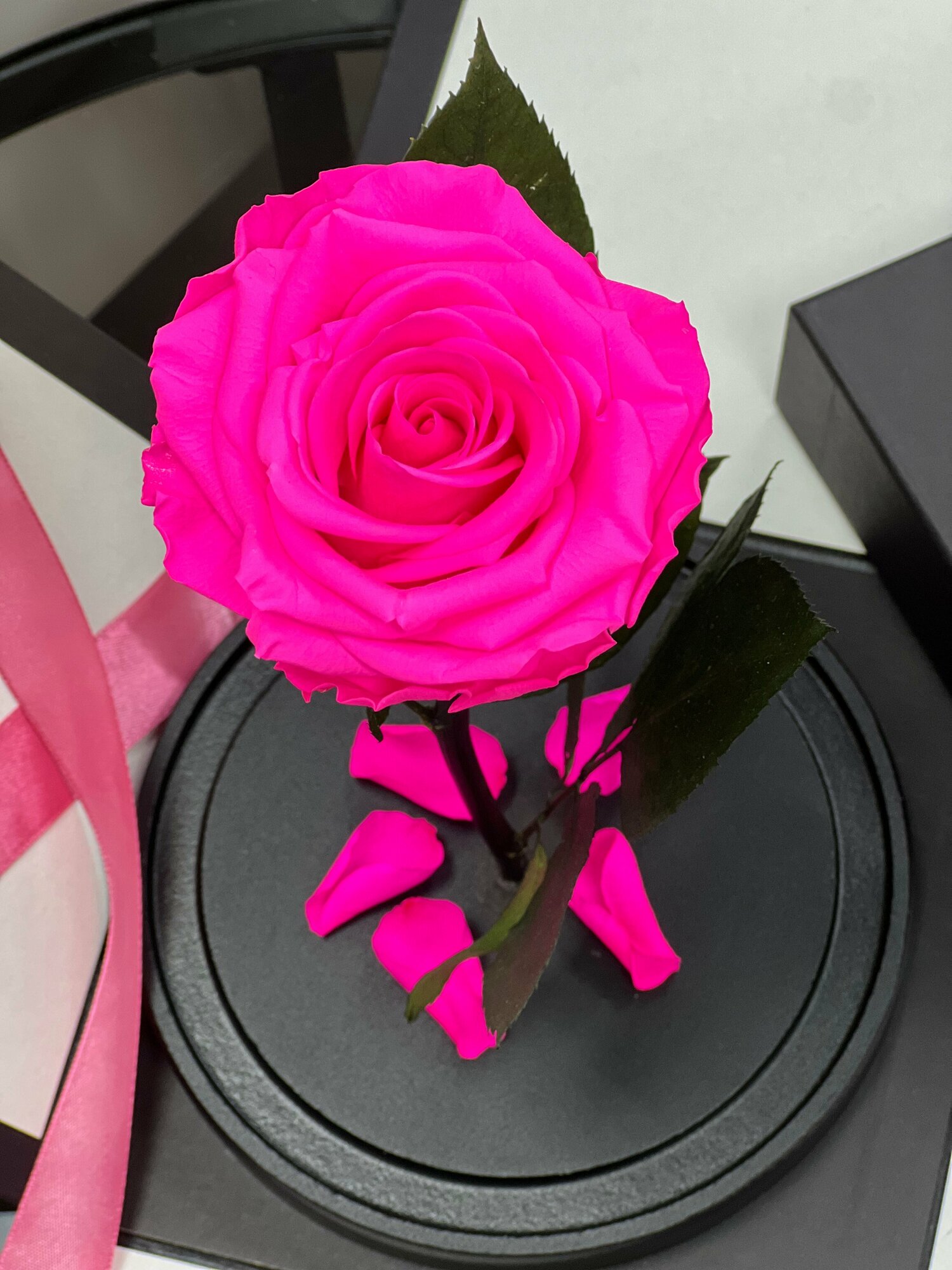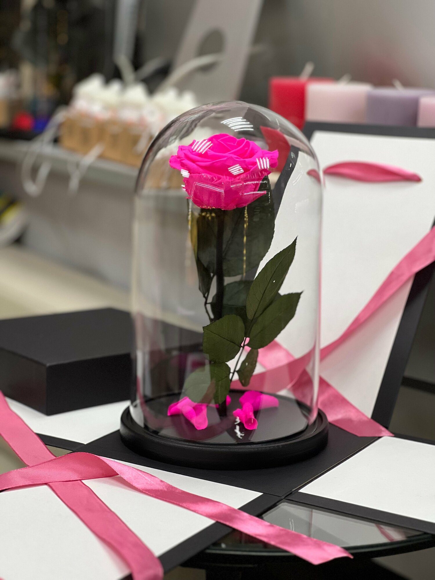 Купить Фуксия роза в колбе «Премиум» в подарочной коробке с вау-эффектом /26 см/Живет 5 лет! с доставкой по всей России.
