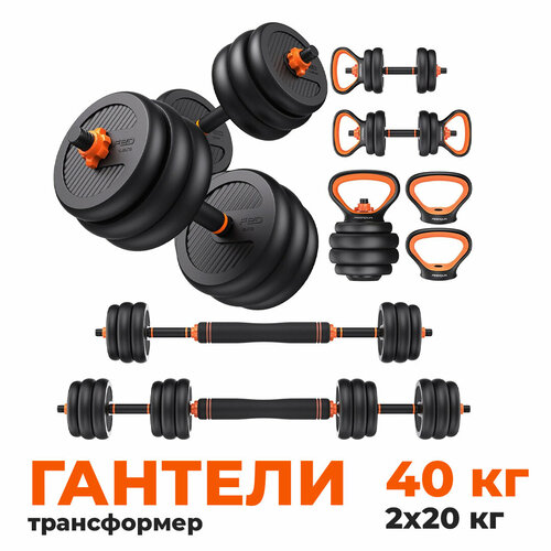 Купить Функциональные гантели , набор с грифом, трансформер, регулируемые, гантели разборные для фитнеса, гиря , общий вес 40 кг, 2 шт. по 20 кг, Hyperfit FEIERDUN KRAFT P- 40 с доставкой по всей России.