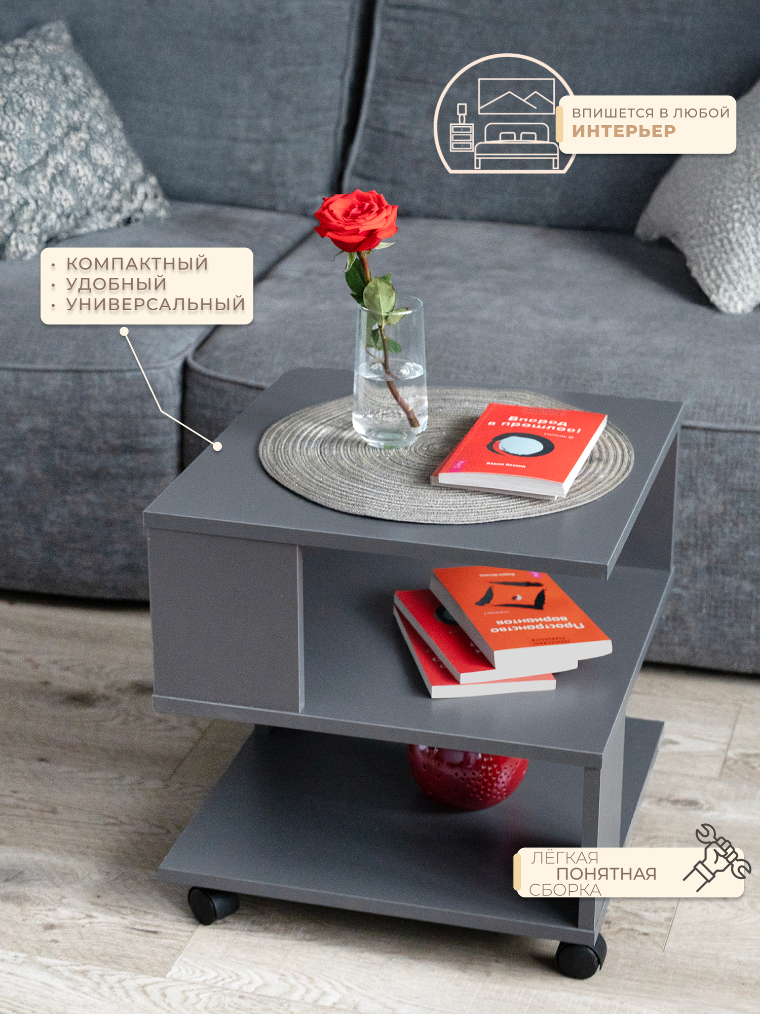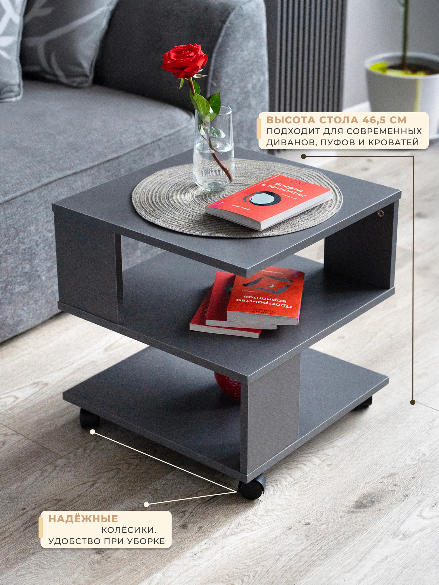Купить Функциональный журнальный столик на колесиках для дома графит с доставкой по всей России. Функциональный журнальный столик на колесиках для дома графит: сравнение цен, характеристики, фото, актуальное наличие и цены.