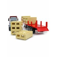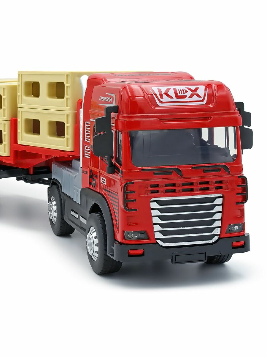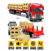 Купить Фура Тягач красная с паллетами и погрузчиком- свет и звук- инерционный механизм с доставкой по всей России.