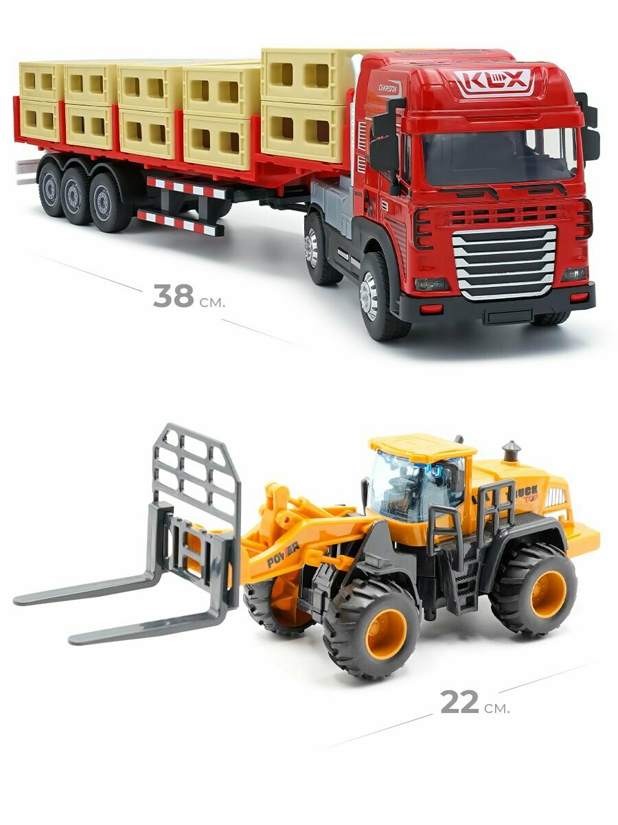 Фура Тягач красная с паллетами и погрузчиком- свет и звук- инерционный механизм: сравнение цен, характеристики, фото, актуальное наличие и цены.