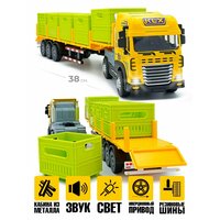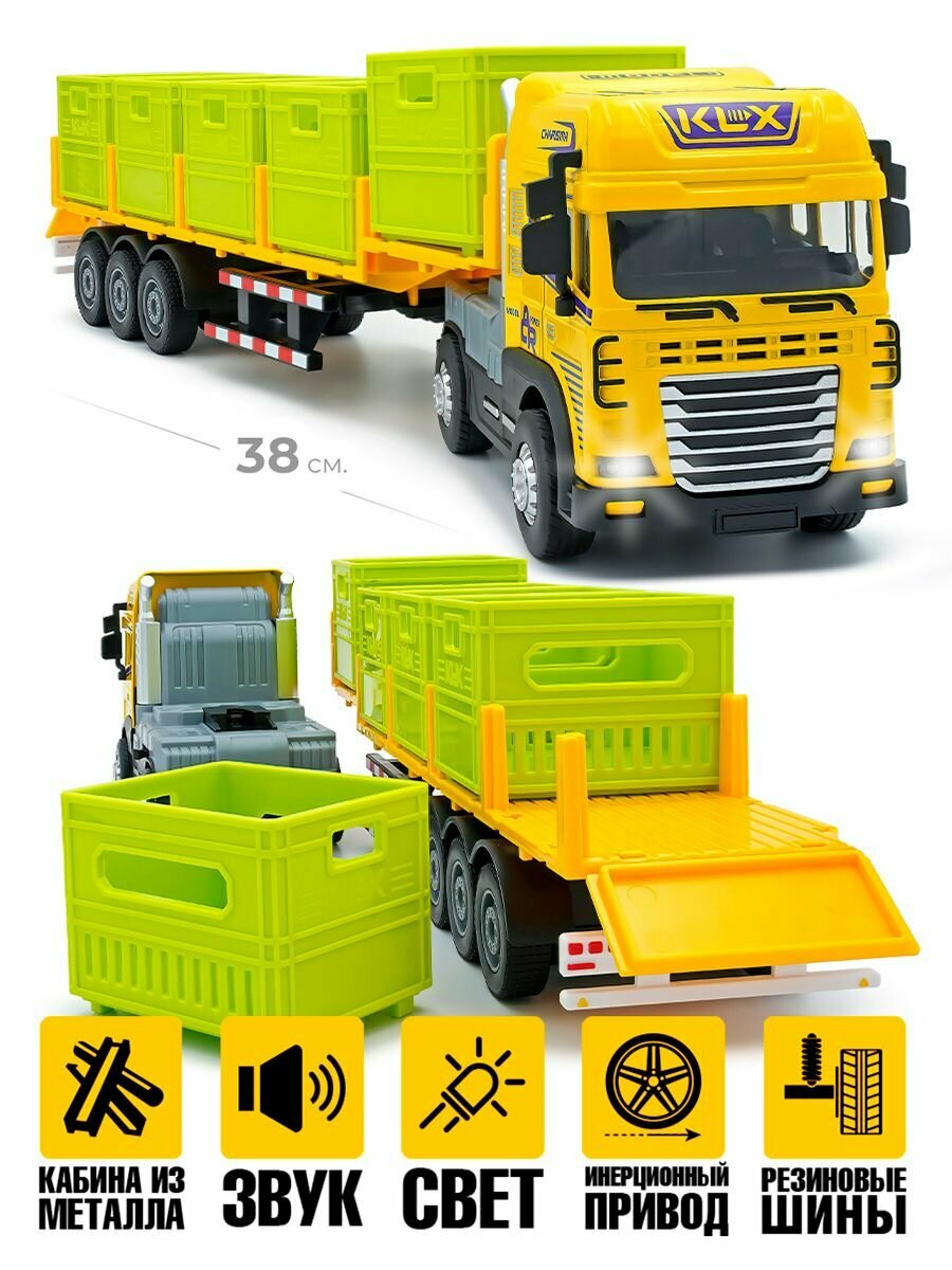 Купить Фура Тягач желтая с прицепом и погрузчиком- свет и звук- инерционный механизм с доставкой по всей России.