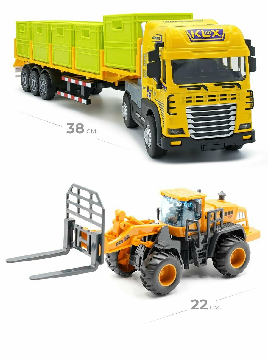 Фура Тягач желтая с прицепом и погрузчиком- свет и звук- инерционный механизм: сравнение цен, характеристики, фото, актуальное наличие и цены.