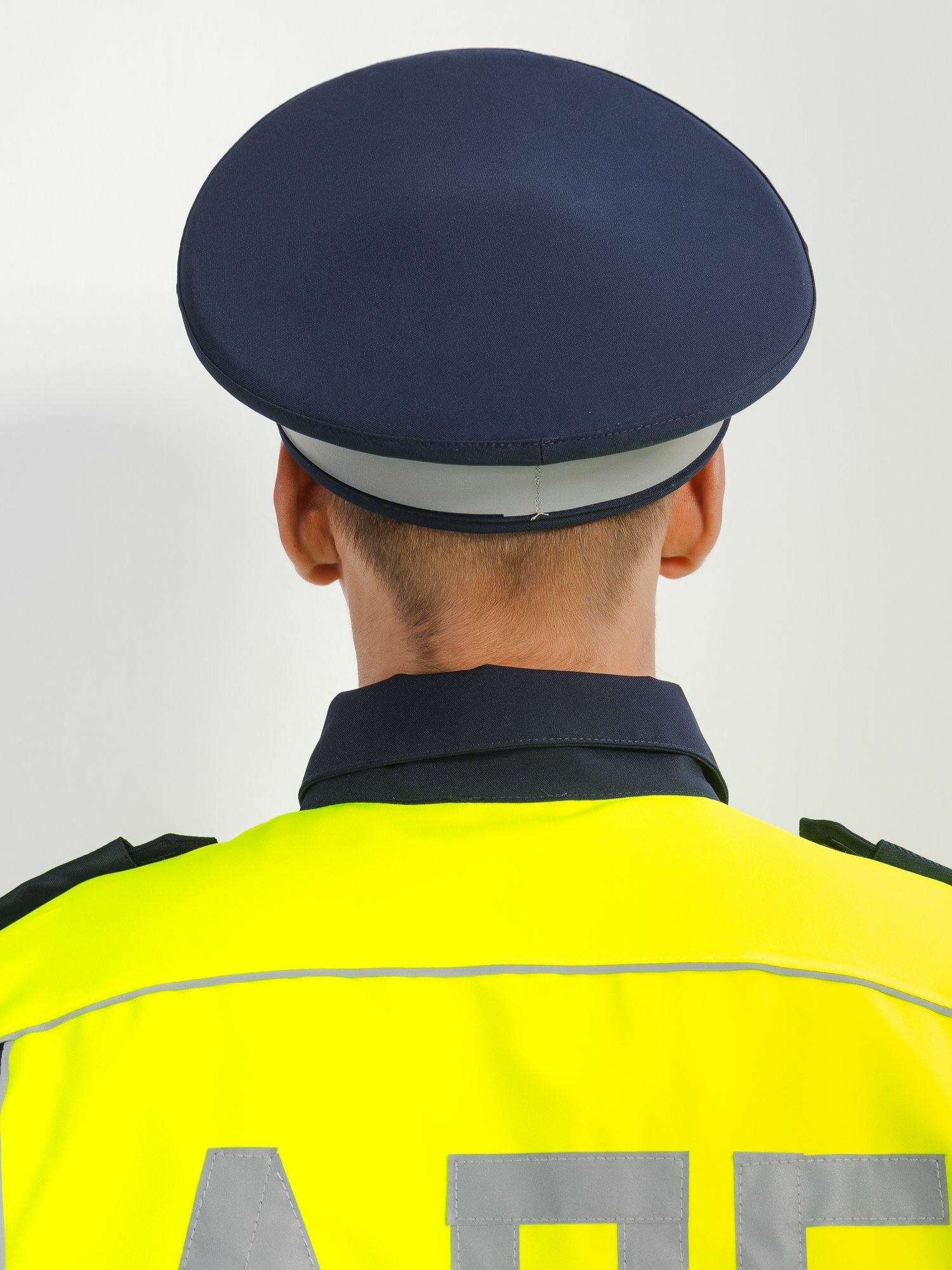 Фуражка ДПС нового образца выполнена из высококачественного материала габардина, который обеспечивает комфорт и долговечность изделия. Габардин — это ткань, устойчивая к загрязнениям и деформациям, она хорошо пропускает воздух, что позволяет коже головы «дышать». Верхняя часть фуражки имеет тёмно-синий цвет, а околыш оформлен светоотражающей лентой, что делает изделие заметным и безопасным в условиях плохой видимости. Высота тульи составляет 7,5 сантиметров, что обеспечивает идеальную посадку на голове. В комплект фуражки входит: филигранный шнур и кокарда. Это придаёт изделию завершённый вид.