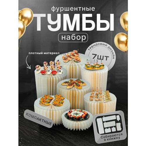 Все для фуршета в одном наборе! 7 тумб в комплекте – это возможность создать многоуровневую сервировку, которая удивит ваших гостей. Украшения на свадьбу, декор для свадьбы или просто стильная сервировка – с нашими тумбами ваш праздник станет незабываемым!