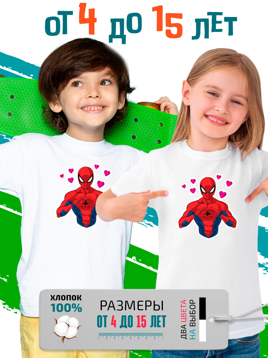 Футболка PhilShop детская Человек паук Spider Man, размер 128, белый