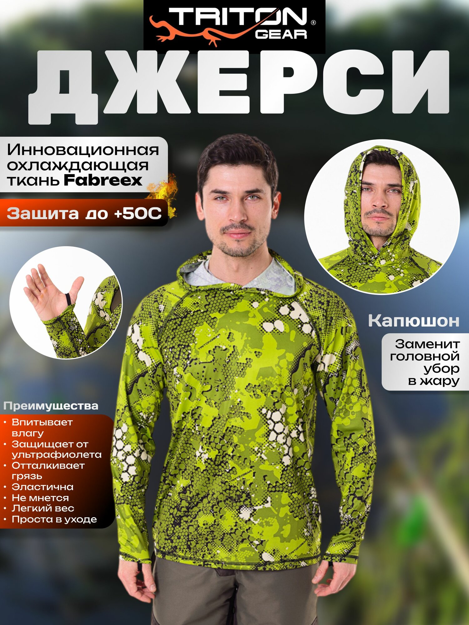 Купить Джерси Triton Gear TRITONGEAR, мужской, для рыбалки, с капюшоном, салатовая, р-р 50, до +50°C с доставкой по всей России.