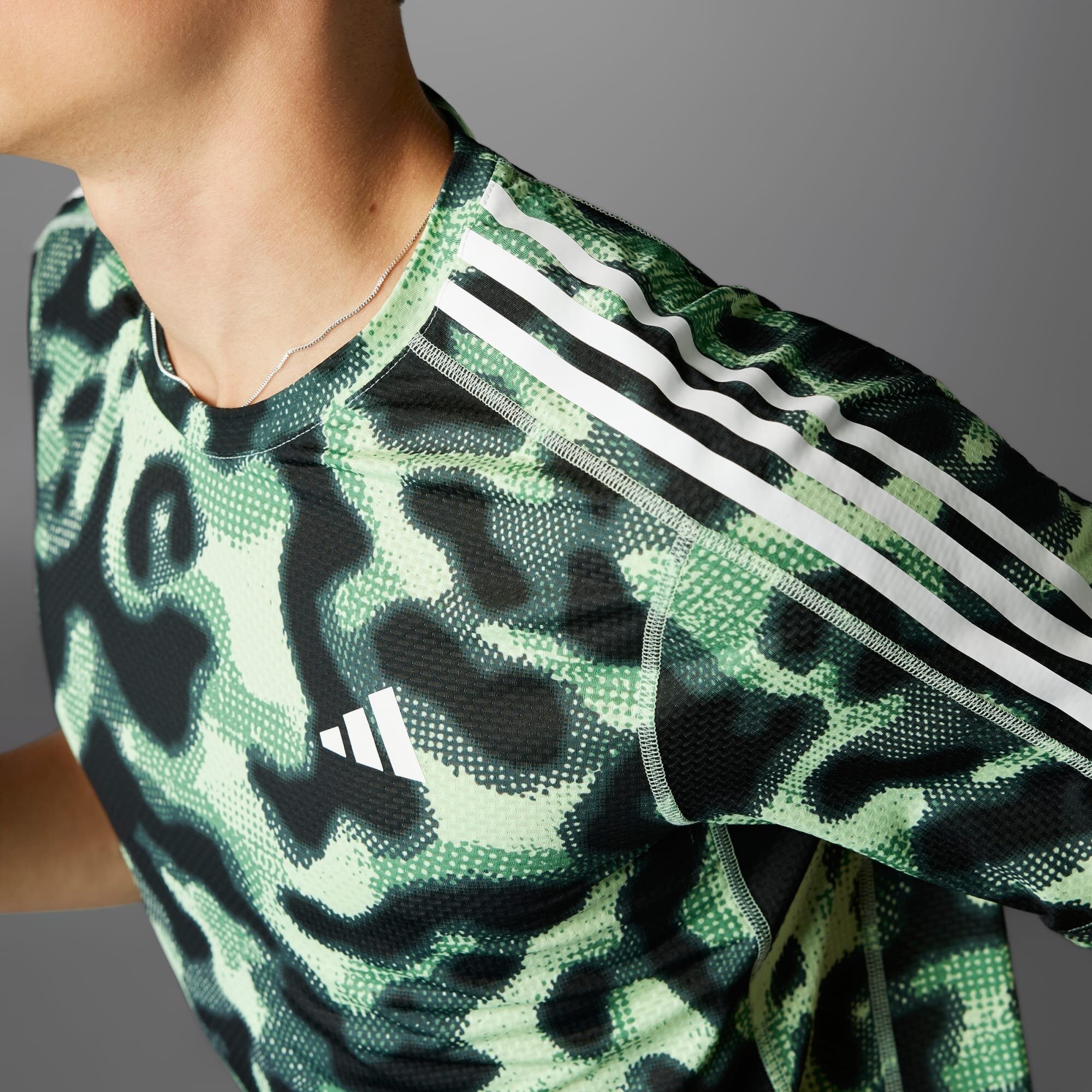 Купить Футболка спортивная adidas Own the Run 3-Stripes Allover Print Tee, размер XL, зеленый с доставкой по всей России.