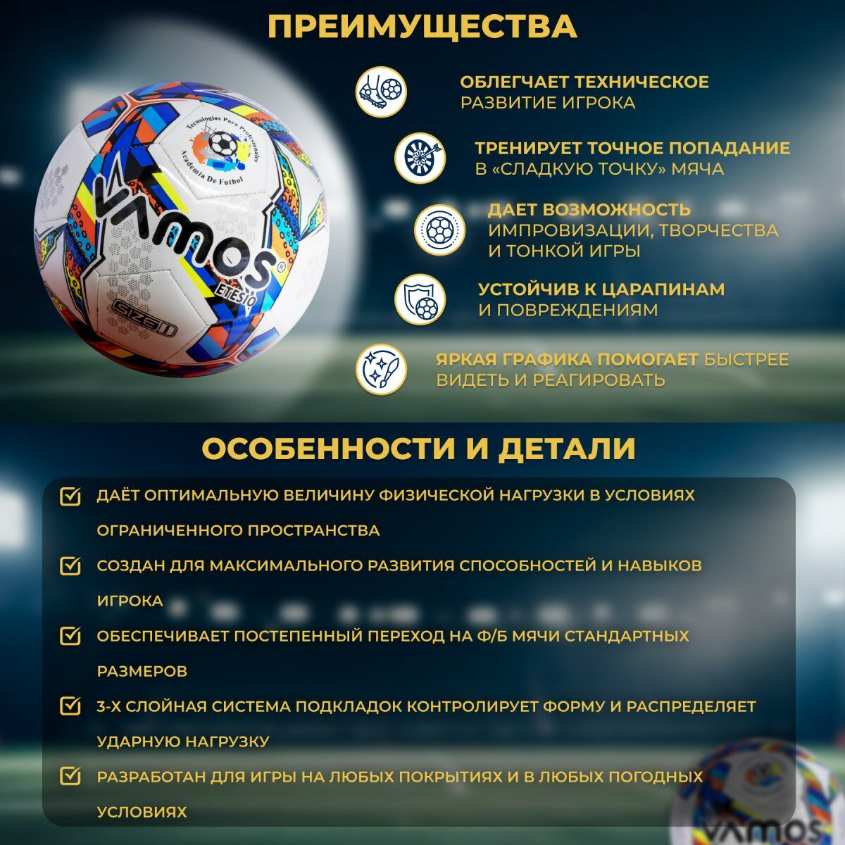 Футбольный мяч Vamos ETESIO, 1 размер, тренировочный, полиуретан, белый, синий: сравнение цен, характеристики, фото, актуальное наличие и цены.