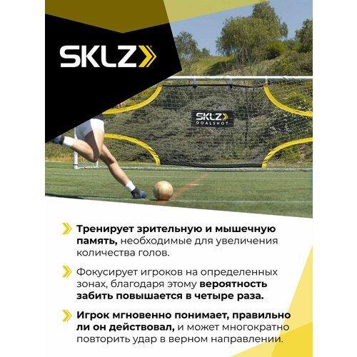 Goalshot разработан с учетом исследований, показывающих, как забивают голы игроки высшей лиги. Goalshot помогает игрокам тренировать мышечную память и зрение, участвующие в отработке гола. Goalshot делает то, что не под силу тренировочным конусам, манекенам и вратарям: он создает визуальную ориентацию на определенные зоны, забивая в которые, вы попадете в ворота наверняка.