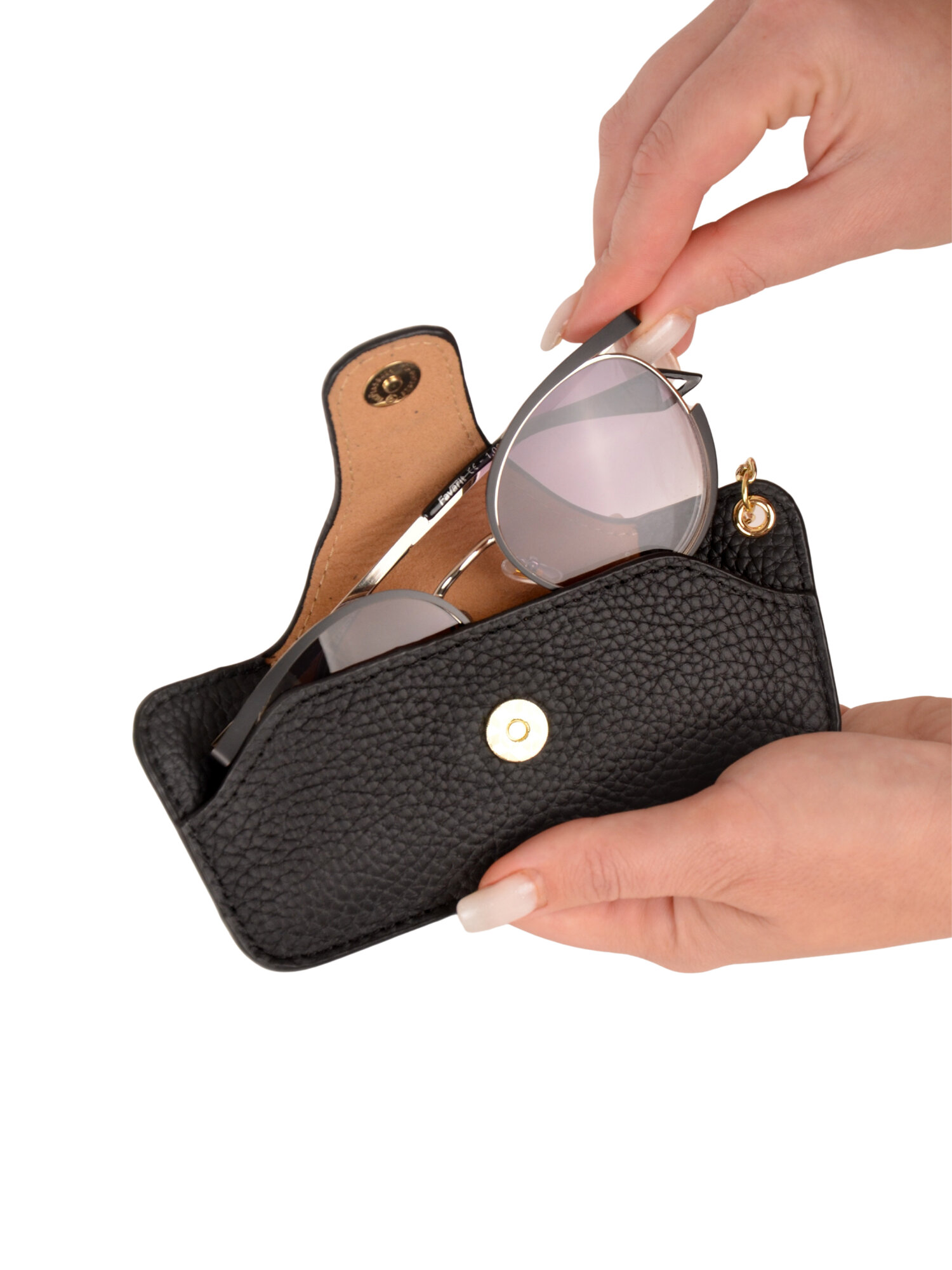 Новинка-дизайнерский кожаный чехол для очков изготовлен из мягкой воловьей кожи. Закрывается на кнопку. Имеет цепочку-карабин для пристегивания к сумке. Ваши очки надежно защищены от падения и царапин. Модные расцветки. Удобство использования. Идея для подарка.