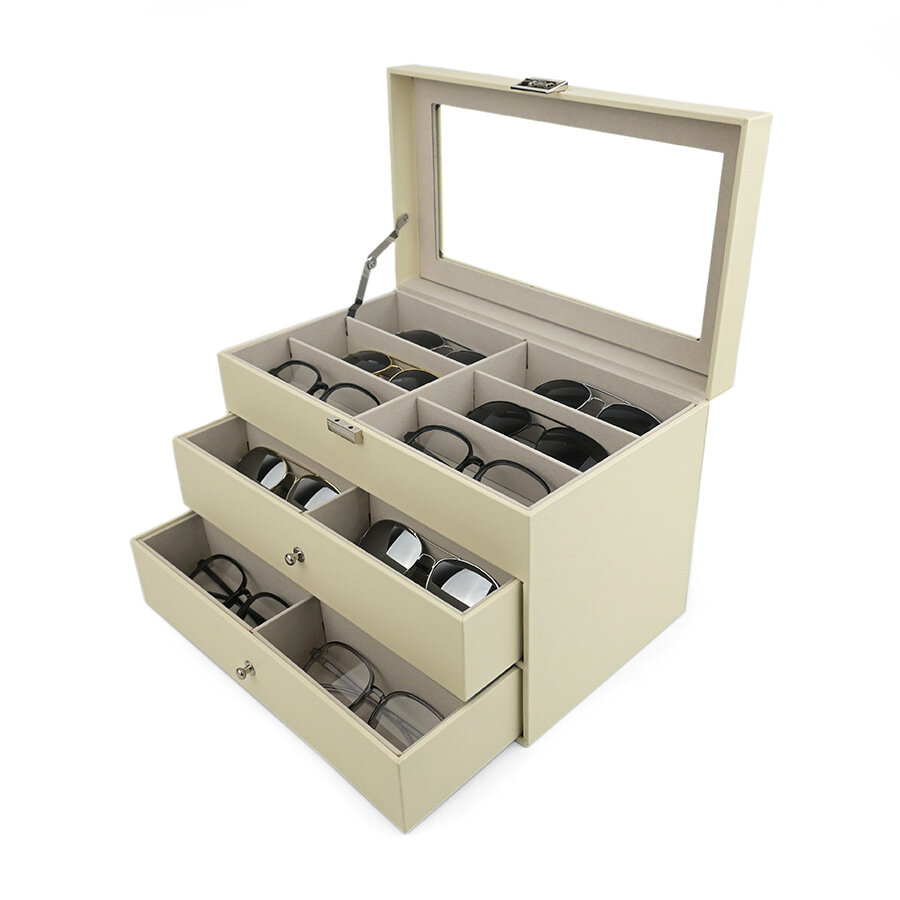- Цвет: белая кожаная коробка для хранения очков из 18 сеток