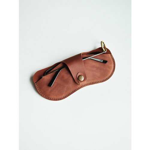Оригинальный чехол для очков из натуральной мягкой кожи на кнопке. Для тех кто устал от больших футляров, которые занимают слишком много места в сумке. Удобен в машине или для небольшой сумки.