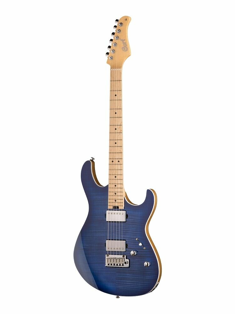 Купить G290 FAT II BBB электрогитара, корпус сассафрас, топ огненный клен, привинченный гриф, порожек из бивня, 22 лада, 25,5″, локовые колки, тремоло CFA-III, датчики VTH-77, цвет Bright Blue Burst, Cort с доставкой по всей России.