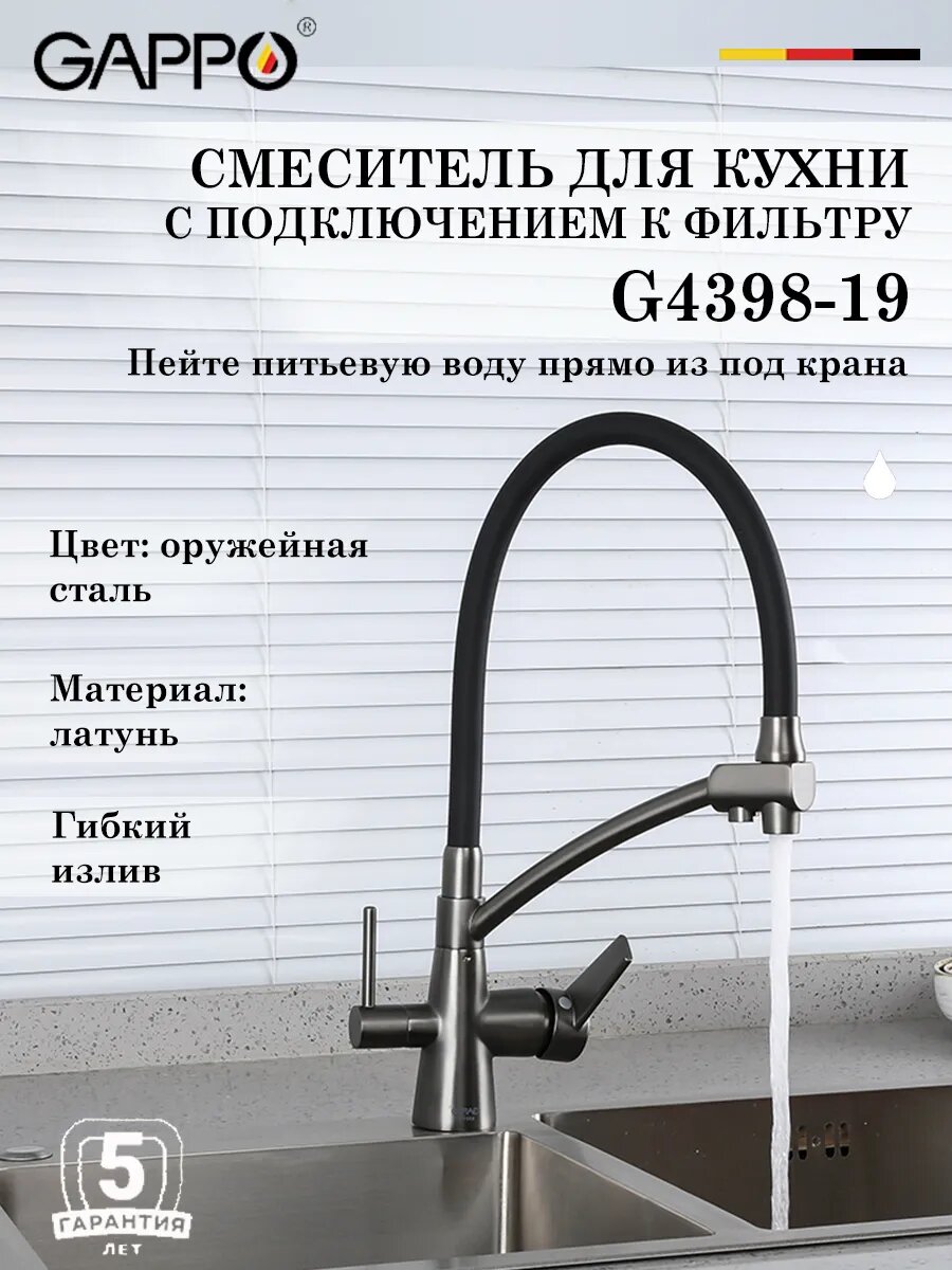 • Смеситель имеет совмещенный излив для фильтрованной воды