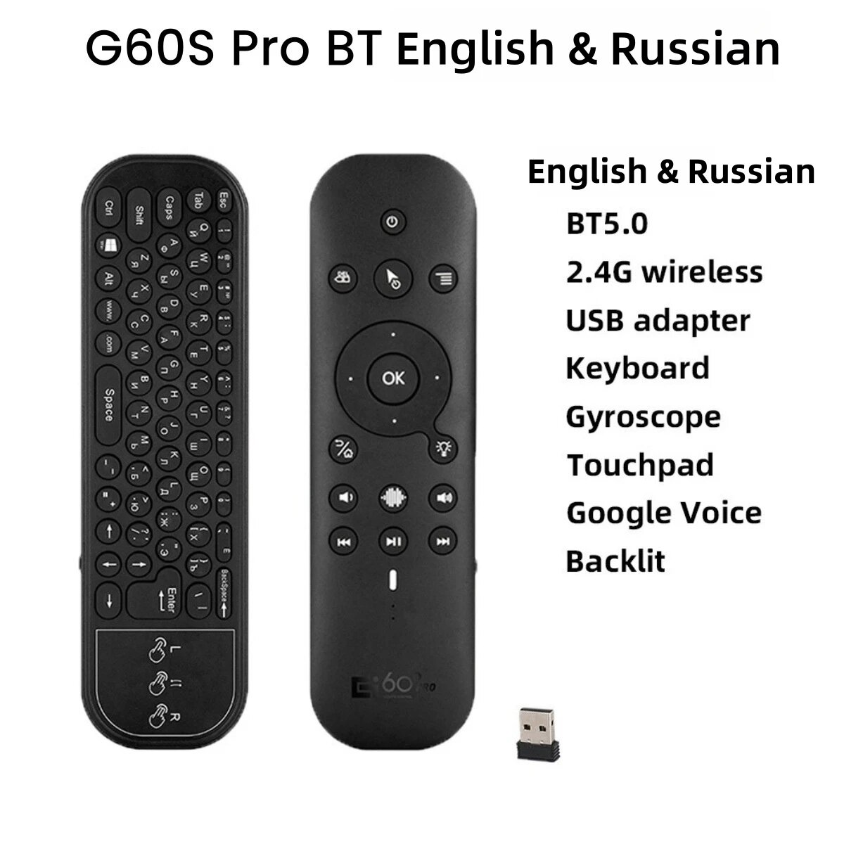 Купить G60S ProBT Пульт дистанционного управления с подсветкой и 2,4G BT5.0 Google Voice Assistant Air Mouse Беспроводная клавиатура с сенсорной панелью для Android TV BOX с доставкой по всей России. G60S ProBT Пульт дистанционного управления с подсветкой и 2,4G BT5.0 Google Voice Assistant Air Mouse Беспроводная клавиатура с сенсорной панелью для Android TV BOX: сравнение цен, характеристики, фото, актуальное наличие и цены.