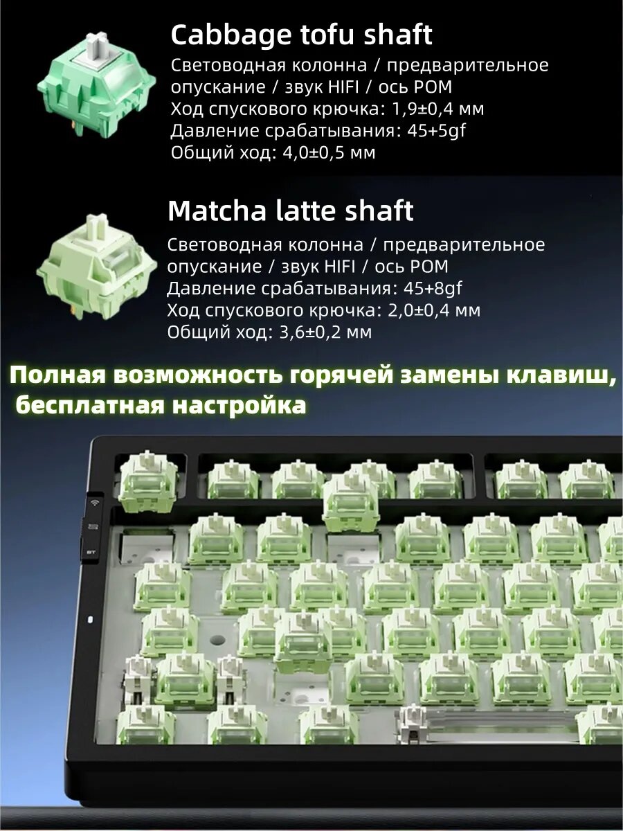 Персонализированный дизайн: Общий дизайн клавиатуры прост и атмосферен, при этом предлагается множество цветовых решений, таких как очаровательный ночной розовый и густой лесной зеленый, для удовлетворения индивидуальных потребностей различных пользователей. Дизайн клавиатуры с боковой гравировкой не только придает клавиатуре индивидуальность, но и делает шрифт менее подверженным износу, и он по-прежнему хорошо виден после длительного использования.