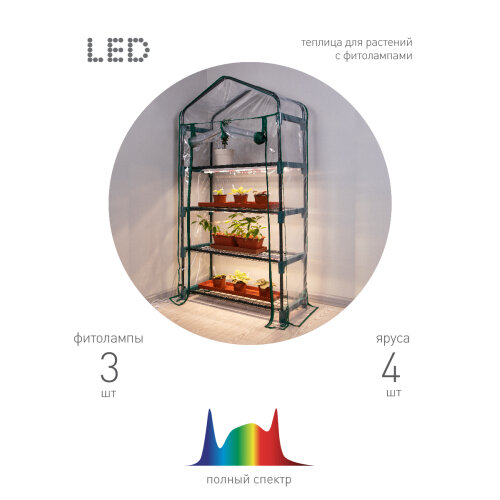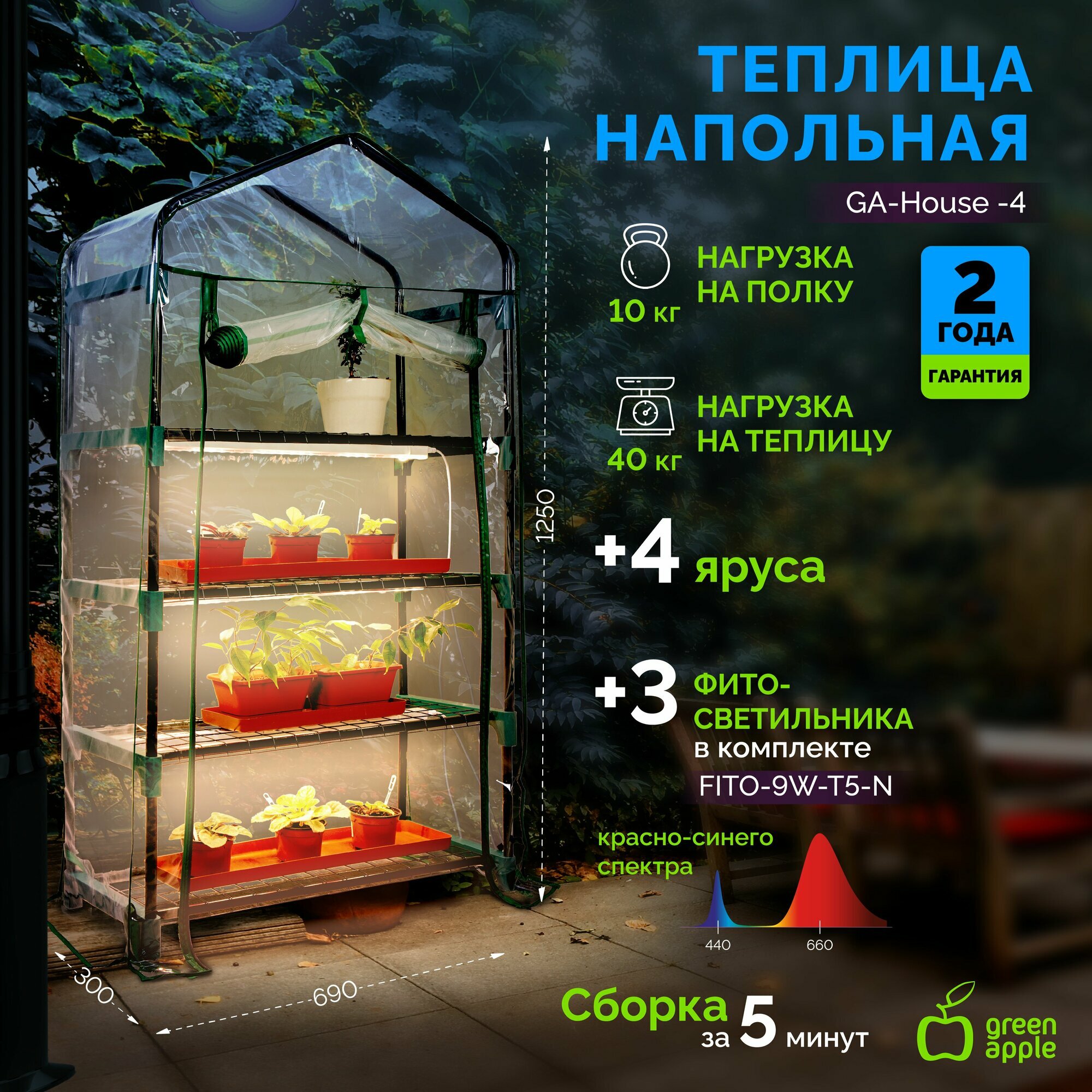Теплица GREEN APPLE GA-House-4 с фитосветильниками в комплекте 4 яруса 1250х690х300 мм: сравнение цен, характеристики, фото, актуальное наличие и цены.