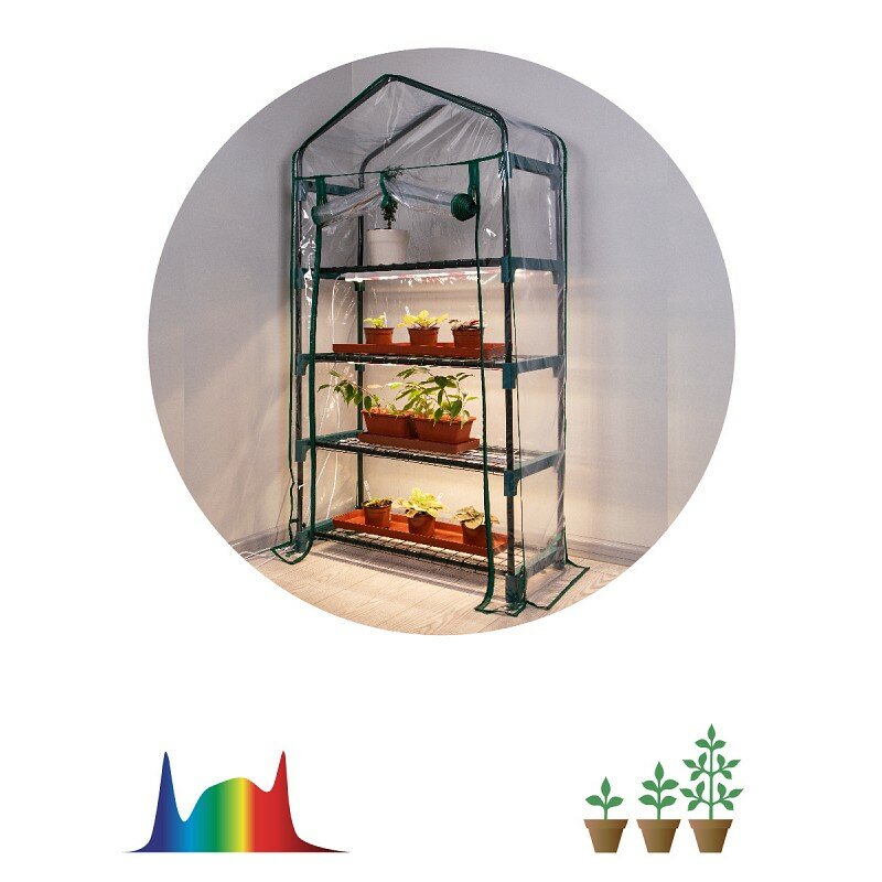 Купить Теплица GREEN APPLE GA-House-4 с фитосветильниками в комплекте 4 яруса 1250х690х300 мм с доставкой по всей России.