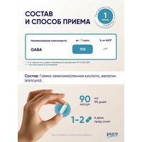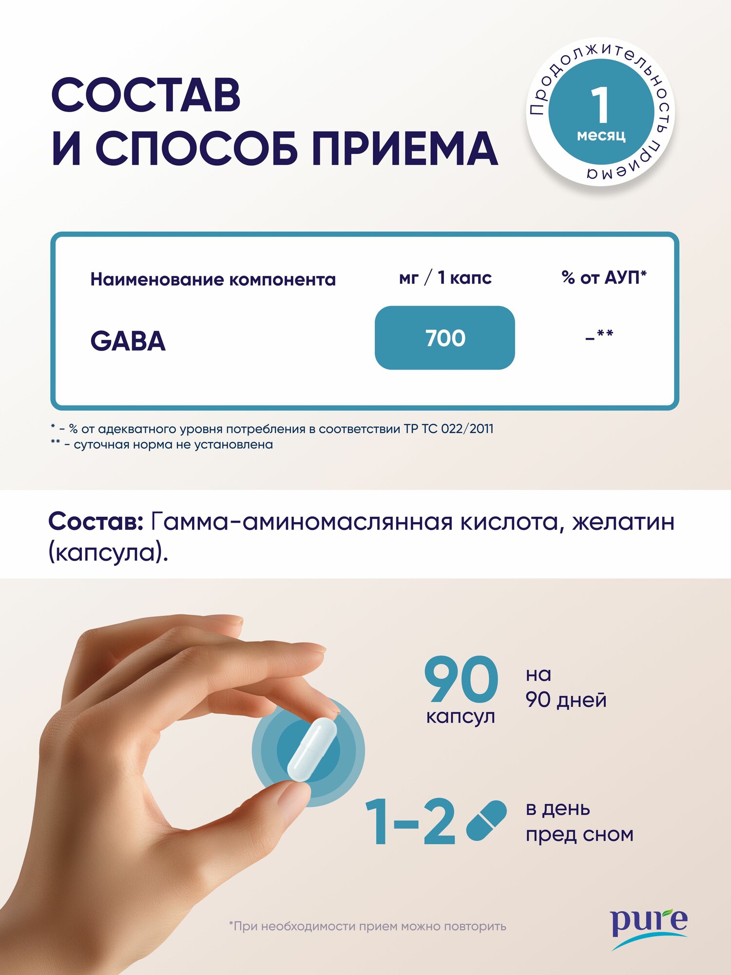 Купить Габа gaba 700 мг PURE успокоительное антидепрессант от стресса и тревоги для сна Гамма аминомасляная кислота 90 капсул с доставкой по всей России.