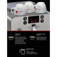 автоматическая декальцинация, автоотключение при неиспользовании, быстрый пар, одновременное приготовление двух чашек, подача горячей воды, предварительное смачивание
