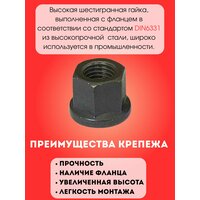 Купить Гайка М14 x 2.0 DIN6331 высокая с фланцем высокопрочная (10.9), 12 шт с доставкой по всей России.