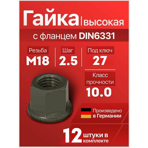 Купить Гайка М18 x 2.5 DIN6331 высокая с фланцем высокопрочная (10.9), 12 шт с доставкой по всей России. Гайка М18 x 2.5 DIN6331 высокая с фланцем высокопрочная (10.9), 12 шт: сравнение цен, характеристики, фото, актуальное наличие и цены.
