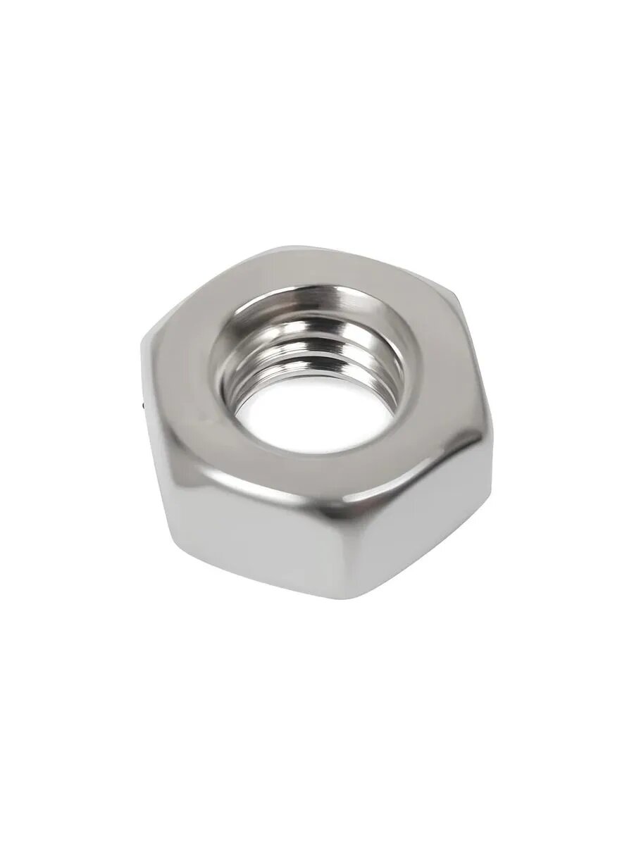 Конструкция: Шестигранная форма гайки является классическим решением, обеспечивающим надежное и удобное крепление. Такая форма позволяет равномерно распределять усилие при закручивании и откручивании гайки, что особенно важно при работе с высокими нагрузками. Гайка имеет стандартную метрическую резьбу, что делает её совместимой с большинством болтов и шпилек.