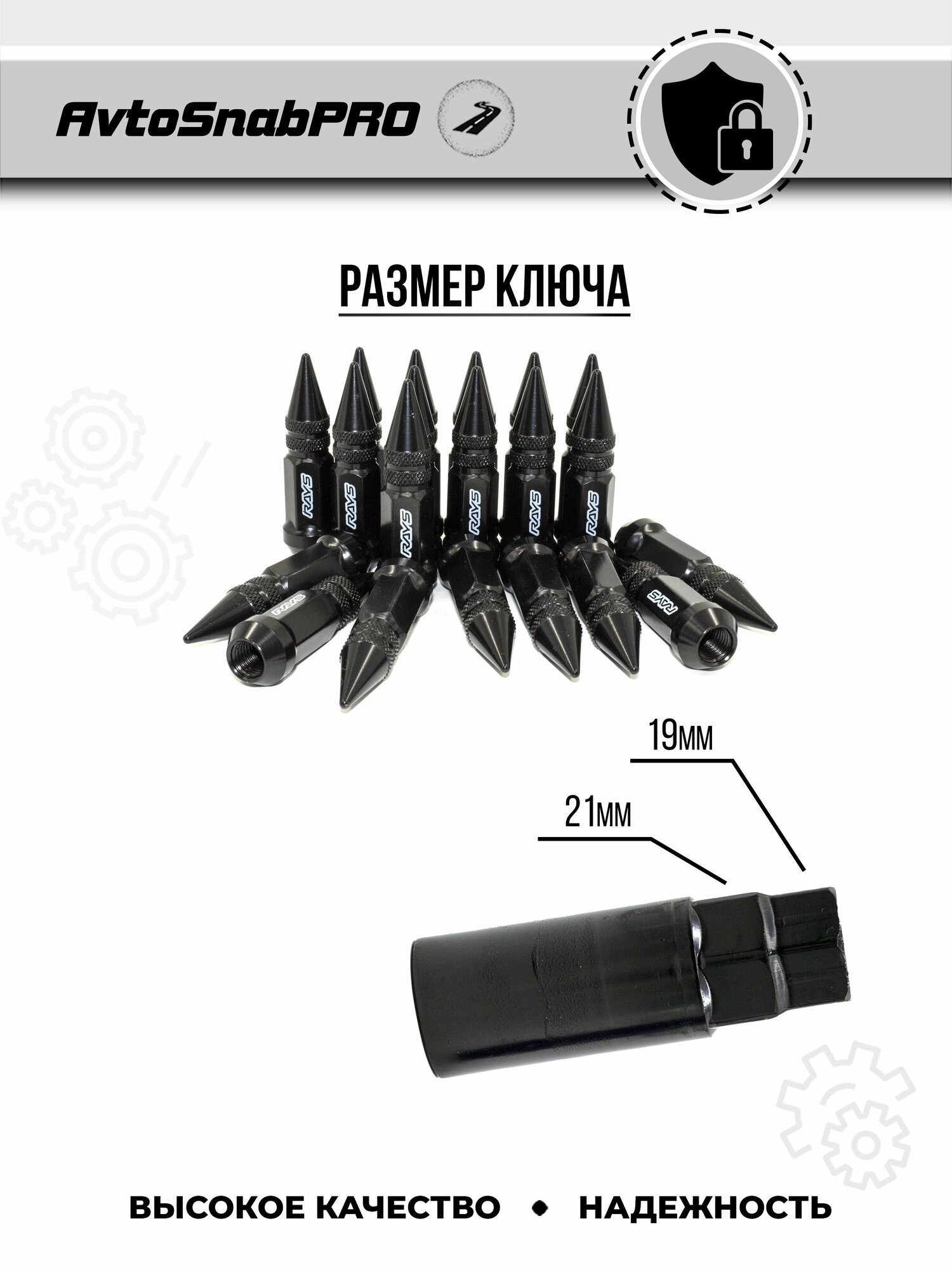 Набор гаек для автомобильных колёс, универсальный с внешним шестигранным профилем в форме Острой Высокой Пули. Изготовлен из специально закаленной стали, под требования автомобильного колёсного крепежа, с определённым классом прочности. Внешний шестигранный профиль в форме Острой Высокой Пули гайки предназначен для декоративного украшения и тюнинга колеса Вашего автомобиля, универсален и подходит для колесных дисков с узким посадочным отверстием. Имеет определённую степень защиты от хулиганов желающих украсть Ваши колеса, так как с обычным балонным ключём их снять не получится. Имеется большой ассортимент цветов, что сопутствует подбору идеальной цветовой гаммы для вашего автомобиля. Специальный ключ в комплекте колесных гаек предполагает возможность пользоваться стандартным балонным ключём из Вашего багажника.