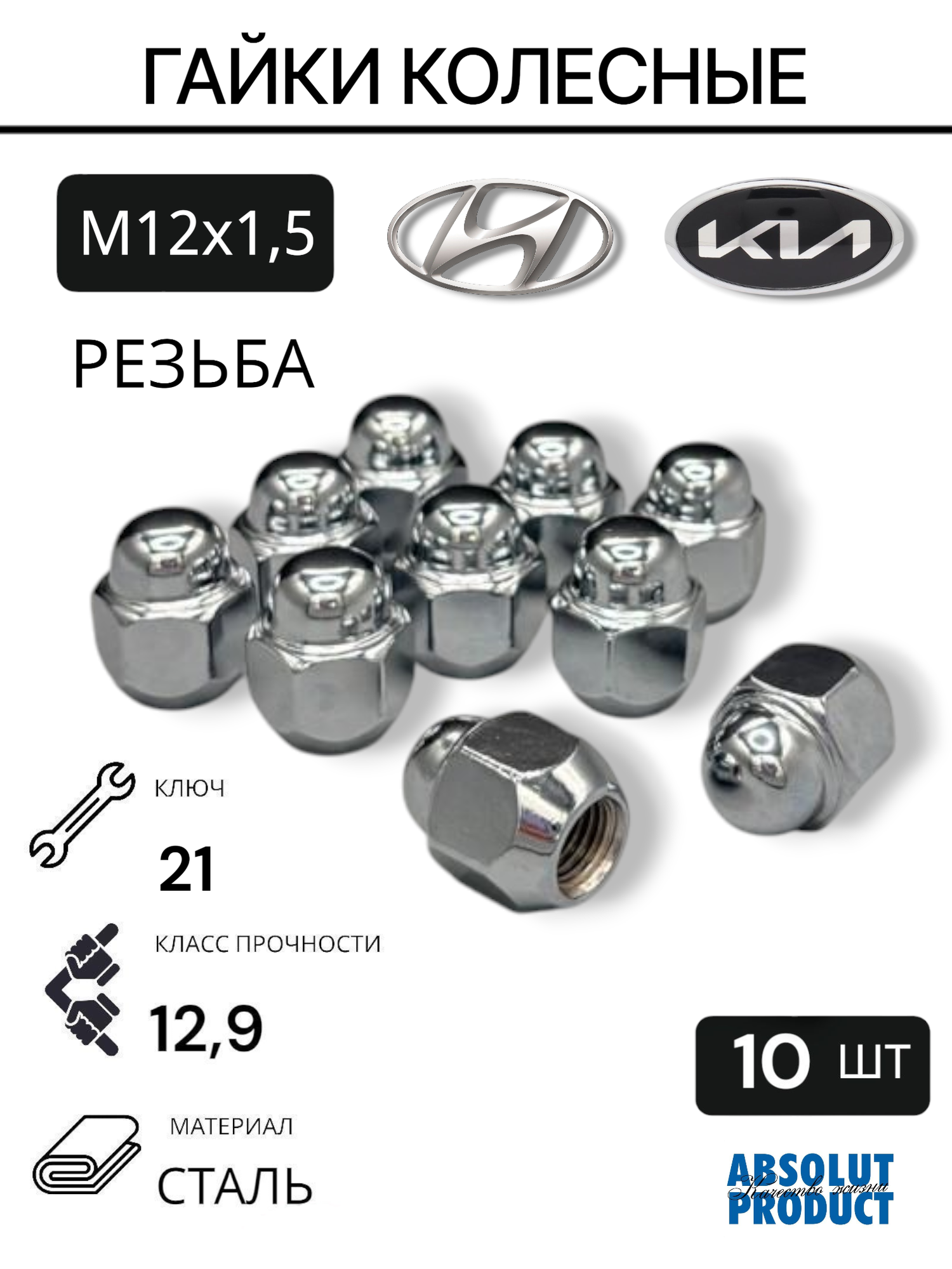 Купить Гайки колесные, М12х1,5 для Hyundai, Kia 10 шт с доставкой по всей России. Гайки колесные, М12х1,5 для Hyundai, Kia 10 шт: сравнение цен, характеристики, фото, актуальное наличие и цены.