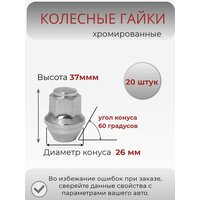 Колесные гайки для крепления дисков автомобиля. Гайка цельная (без колпачков). Материал: высокопрочная сталь. Класс прочности: 8.8 (соответствует требованиям к колесному крепежу мировых производителей автомобилей)- Резьба: 14х1.5- Высота, мм:37- Прижимная поверхность: увеличенный конус- Покрытие: хром- Ключ: 21 мм-Диаметр конуса: 26 мм. Комплект: 20 шт.-. Внимание! Во избежание ошибок при заказе, сверяйте данные свойства с параметрами вашего авто. Обращайте внимание на диаметр и шаг резьбы. Гайки колесные с увеличенным конусом, гайки М14х1,5, колесные гайки с большим конусом, колесные гайки, гайки колесные