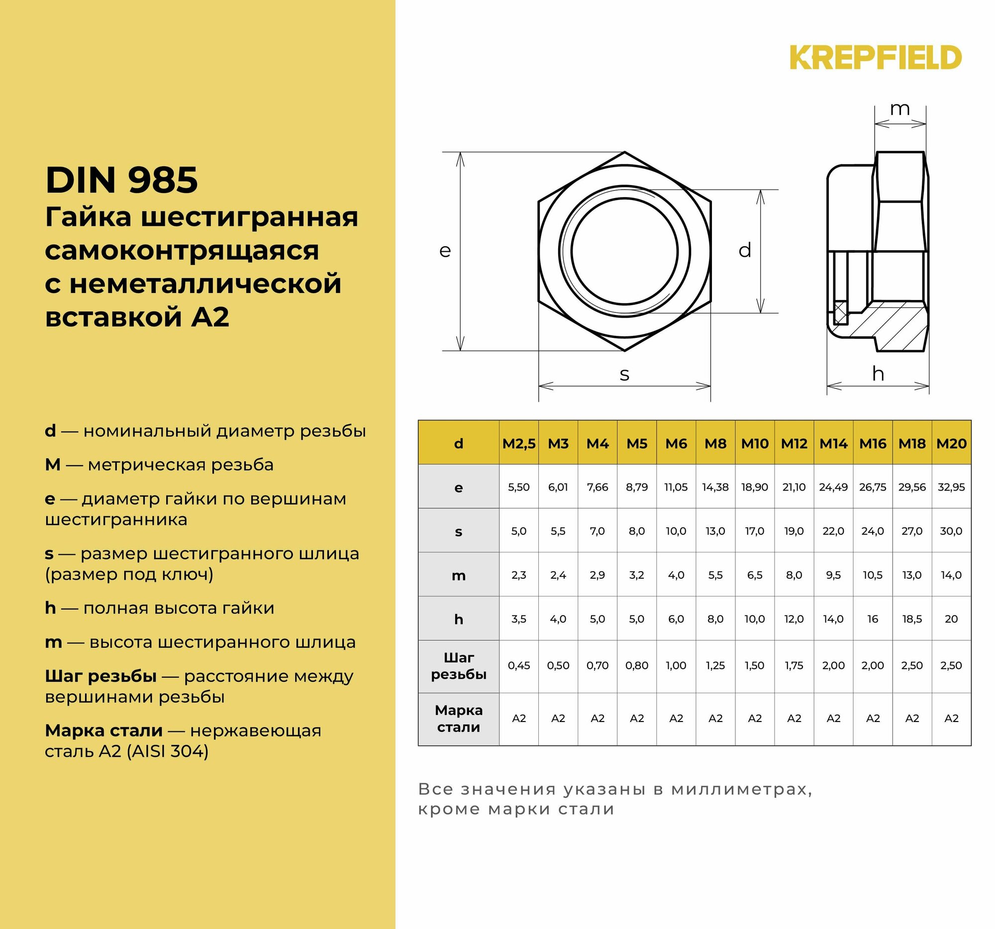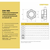 Гайки KREPFIELD DIN 985 А2, нержавеющая сталь, самоконтрящиеся, М2,5, 250шт: сравнение цен, характеристики, фото, актуальное наличие и цены.