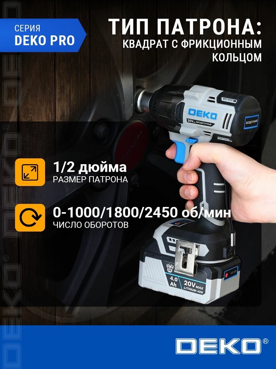 Гайковерт аккумуляторный бесщеточный DEKO DKIS предназначен для закручивания/ослабления болтов и гаек, сборки деревянных конструкций, сантехнических и общестроительных работ. Этот гайковёрт имеет 3 режима/скорости для затягивания болтов и 2 режима для ослабления болтов. Каждый режим означает разные скорости и мощности. Пользователь выбирает подходящий режим исходя из конкретных задач. Благодаря большому крутящему моменту можно выполнять тяжелые работы. Не нуждается в наличии электросети за счет наличия литий-ионного аккумулятора. Бесщеточный двигатель экономно расходует заряд батареи, имеет большой КПД и отличается более долгим сроком службы. Гайковерт аккумуляторный бесщеточный DEKO DKIS20 совместим с аккумуляторами Makita 18 В Li-Ion тип BL-1830, BL-1840, BL-1850, BL-1860.