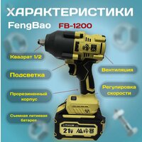 Гайковерт аккумуляторный бесщеточный Feng Bao 1200. 1200nm. 21V. АКБ 8а/ч: сравнение цен, характеристики, фото, актуальное наличие и цены.