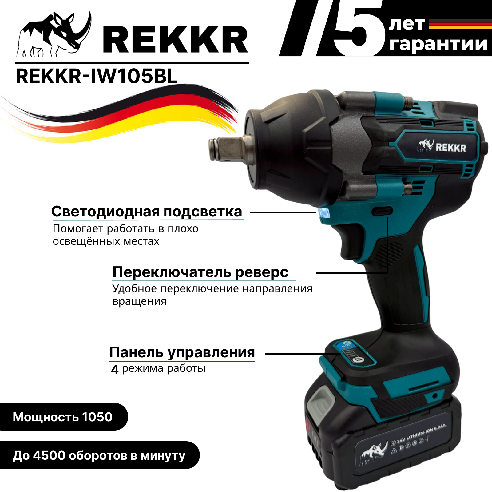 Гайковерт аккумуляторный, бесщеточный REKKR IW105BL, 2 аккумулятора 24В 6.0Ач, ударный, квадрат 1/2, кейс, зарядка: сравнение цен, характеристики, фото, актуальное наличие и цены.
