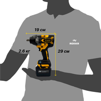 Купить Гайковерт аккумуляторный, бесщеточный REKKR IW110YL, 2 аккумулятора 24В 9.0Ач, ударный, квадрат 1/2, кейс, зарядка с доставкой по всей России.