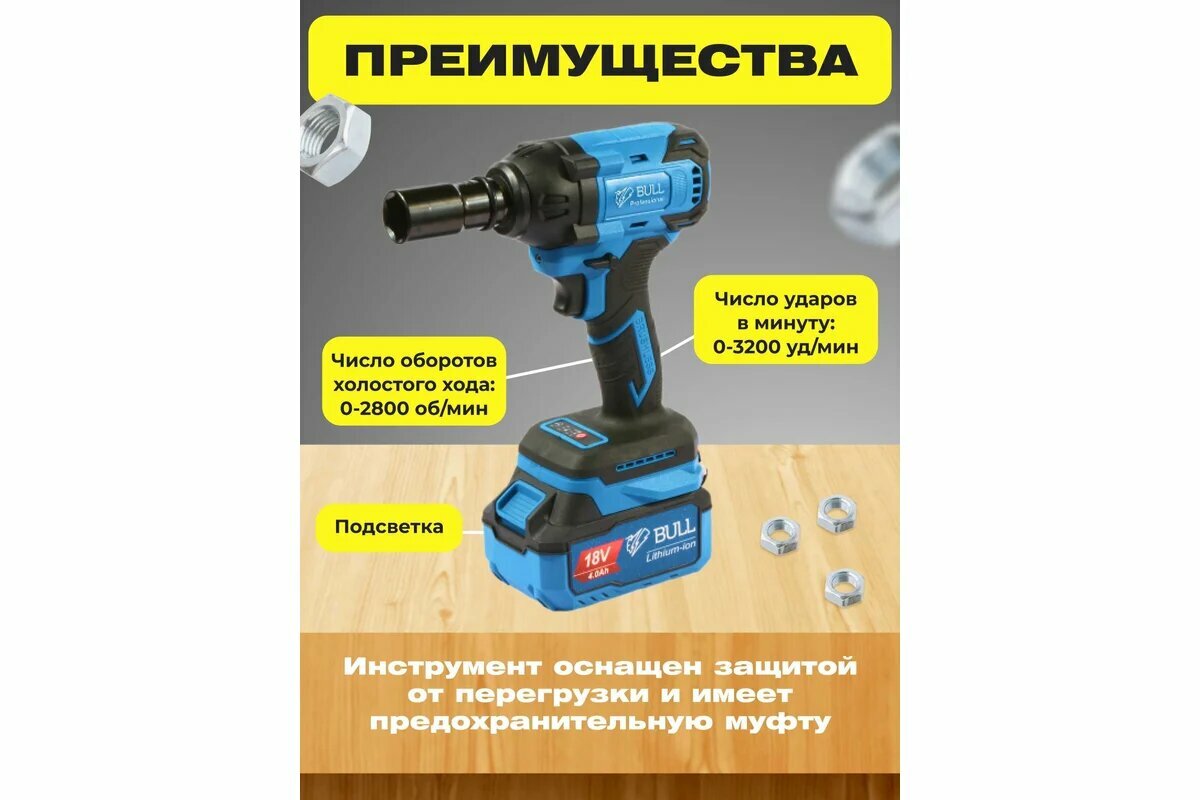Купить Гайковерт аккумуляторный BULL SC 1804, 4 А·ч, 2800 об/мин, лампа точечной подсветки с доставкой по всей России.