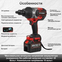 Модель: WS-L9 Двигатель: Бесщеточный двигатель Максимальный крутящий момент: 1000 Нм. Скорость холостого хода: 0-2200/0-1750/0-1400 об/мин. Частота удара: 0-2800/0-2550/0-2550 IPM Диаметр хвостовика: 19 мм (3/4 дюйма) Максимальная выходная мощность: 920 Вт Стандартные болты: M12-M36 (1/2-1-1/4") Высокопрочные болты: M10-M24 (3/8"-1"). Размер: 230*90*245 ммВес: 2742 г Напряжение батареи: 20 В Мощный бесщеточный двигатель 1000NM Настоящий сверхмощный рабочий зверь! - Самая примечательная особенность электрического ударного гайковерта VVOSAI 3/4 дюйма — его максимальный крутящий момент 1000 Нм. Чтобы выкрутить винт, требуется всего 0,5 секунды. Это сила, с которой нужно считаться, и она превосходит 99,9% ударных гайковертов, представленных на рынке. Выбор трех скоростей Благодаря нашим 3-скоростным вариантам (0–2200 об/мин/0–1750 об/мин/0–1400 об/мин), расположенным в основании вашего электрического ударного пистолета, вы можете уверенно решать любую задачу, не беспокоясь о том, что испортите свою работу или создадите беспорядок в гараже. Предназначен для тяжелых работ, таких как грузовики, прицепы, большие газонокосилки и автомобили, для экономии времени и энергии. Идеально подходит для крупных строительных проектов, обслуживания тяжелого оборудования или снятия шин тяжелых грузовиков. Торможение Ударные гайковерты для тяжелых условий эксплуатации доступны в режиме прямого и обратного хода в соответствии с вашими конкретными потребностями. В режиме обратного хода тормозной стопор срабатывает и снижает скорость и крутящий момент, как только гайка или болт ослабнут, поэтому вы можете попрощаться с летающими болтами. Безопасность всегда на первом месте! Создан для тяжелых работ Разработанный для тяжелых работ, он эффективно справляется с обслуживанием тяжелого оборудования, крупными строительными проектами, сельскохозяйственной техникой, пикапами, ржавыми гайками и болтами, грузовиками-фургонами, ремонтом автомобилей и т. д. Отображение уровня заряда батареи Этот инструмент оснащен функцией отображения заряда аккумулятора, что позволяет вам в любой момент узнать оставшийся заряд аккумулятора и обеспечить бесперебойную работу.