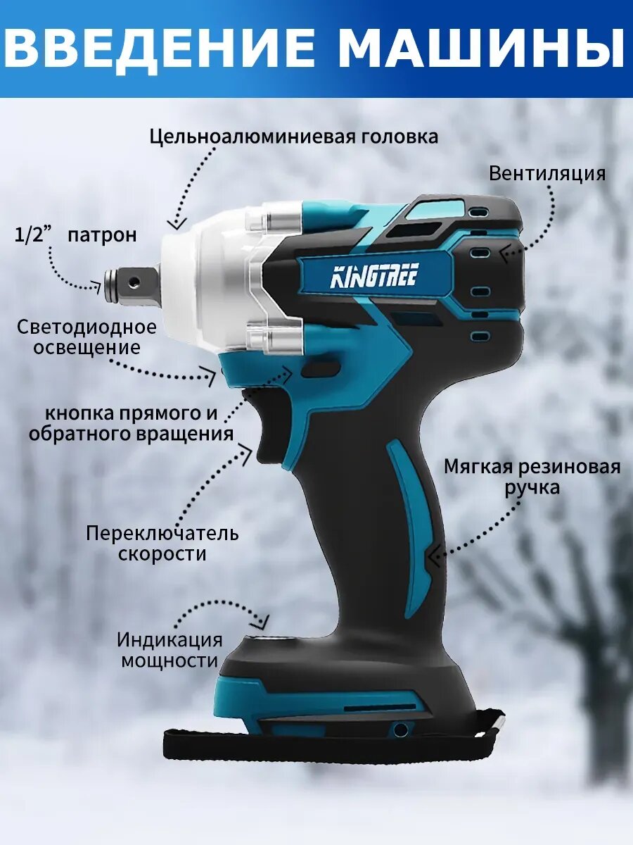 Крутящий момент -588 Нм, плавное переключение скоростей. -Совместим с аккумуляторами Makita. -Светодиодный рабочий свет -Вольфрамовый стальной вал, высокая твердость и износостойкость. -Подходит для ремонта автомобилей, стеллажей, технического обслуживания, плотницких работ и т. д. -Бесщеточный двигатель, высокая эффективность, низкое энергопотребление, долгий срок службы. -Сильный крутящий момент, разработанный для сложных задач по установке и снятию гаек и болтов. -Корпус из пластика АБС делает инструмент легким и прочным, а аккумуляторная конструкция позволяет легко перемещать его и использовать в любых условиях. -Благодаря антивибрационной системе и силе удара этот ударный гаечный ключ обеспечивает отличную производительность и минимизирует усталость во время работы. Аккумуляторный ударный гайковерт Kingtree - это надежный инструмент для профессионалов, которым требуется высокая производительность и качество.