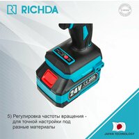 Аккумуляторный ударный гайковерт RICHDA Rh3201 обеспечивает свободу работы независимо от доступа к электрической или пневматической сети.