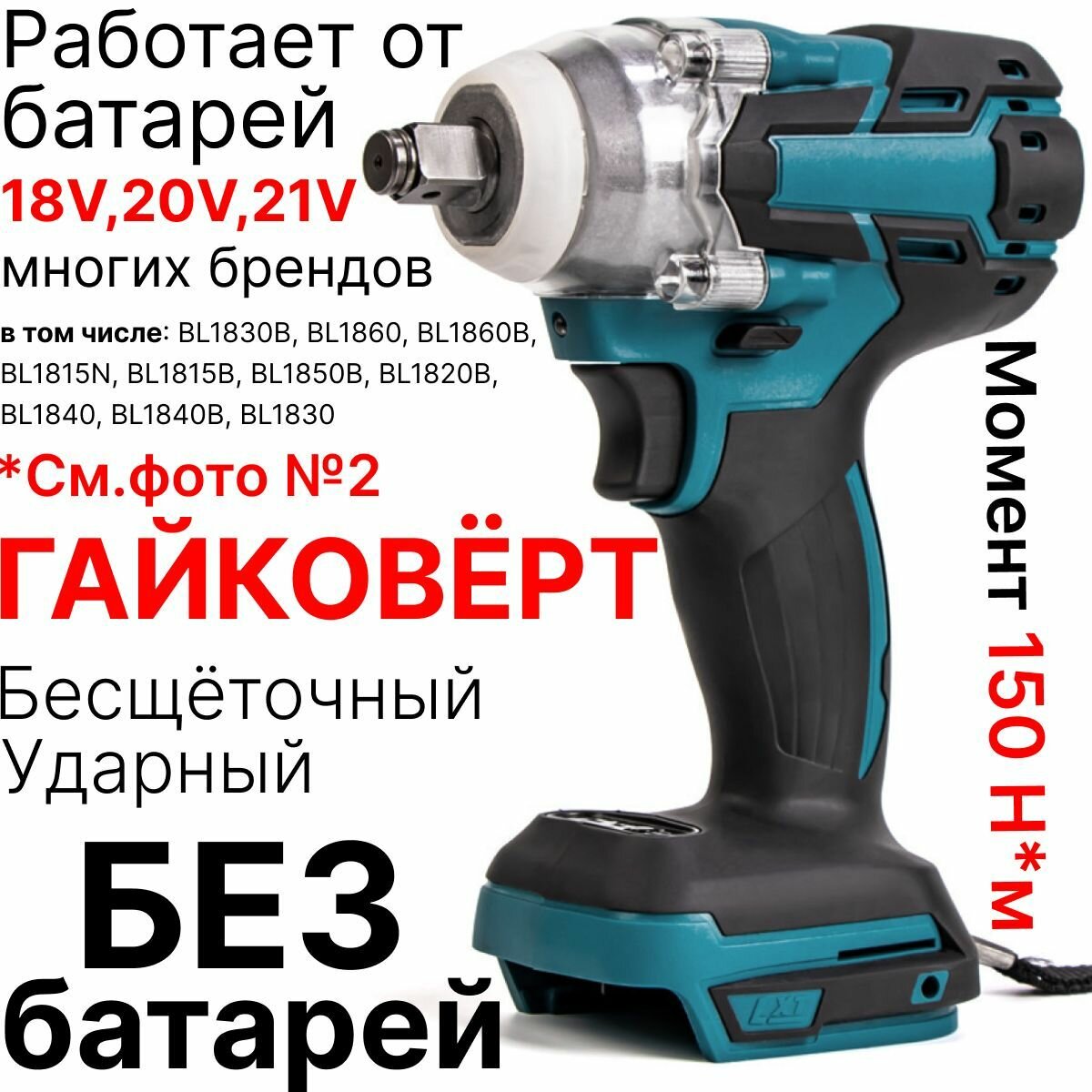 Купить Гайковерт аккумуляторный ударный бесщеточный 18V, патрон 1/2, без аккумулятора, совместим с АКБ 18V с доставкой по всей России.