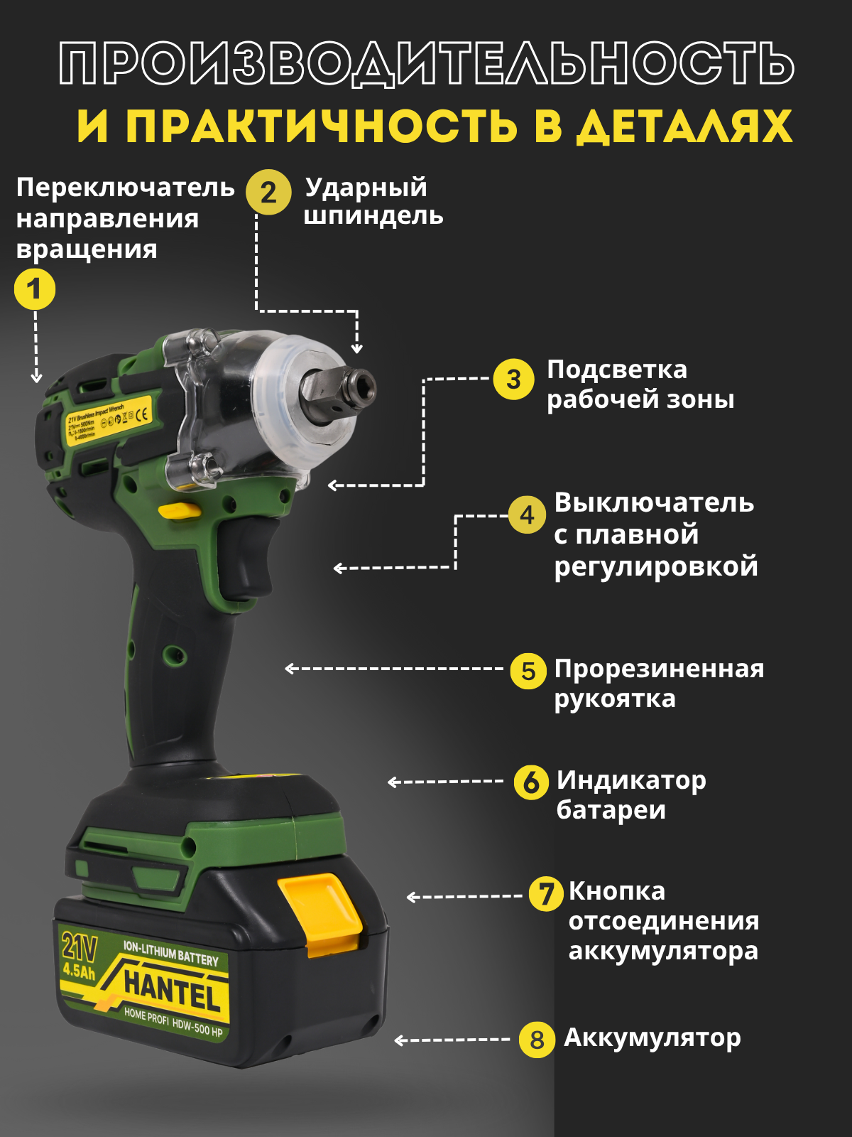 Купить Гайковерт аккумуляторный ударный бесщеточный, в кейсе (21в, 500 Нм, 2 АКБ по 4.5 А/ч) HANTEL HDW-500 HP с доставкой по всей России. Гайковерт аккумуляторный ударный бесщеточный, в кейсе (21в, 500 Нм, 2 АКБ по 4.5 А/ч) HANTEL HDW-500 HP: сравнение цен, характеристики, фото, актуальное наличие и цены.