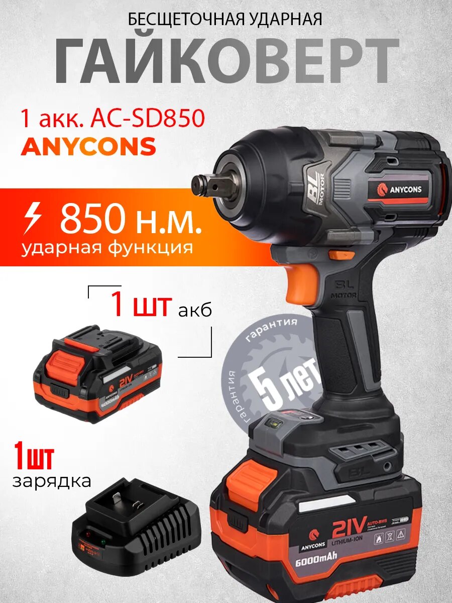 Бесщеточный ударный гайковерт Anycons AC-SD-850, 850Нм, 21В, 1 акб, AC-SD8501: сравнение цен, характеристики, фото, актуальное наличие и цены.