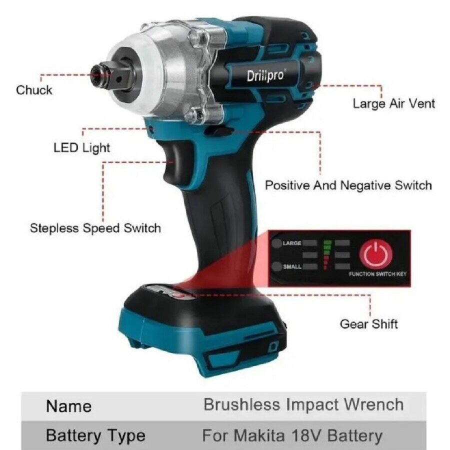 Купить Гайковерт бесщёточный ударный Drillpro без батарей с доставкой по всей России.