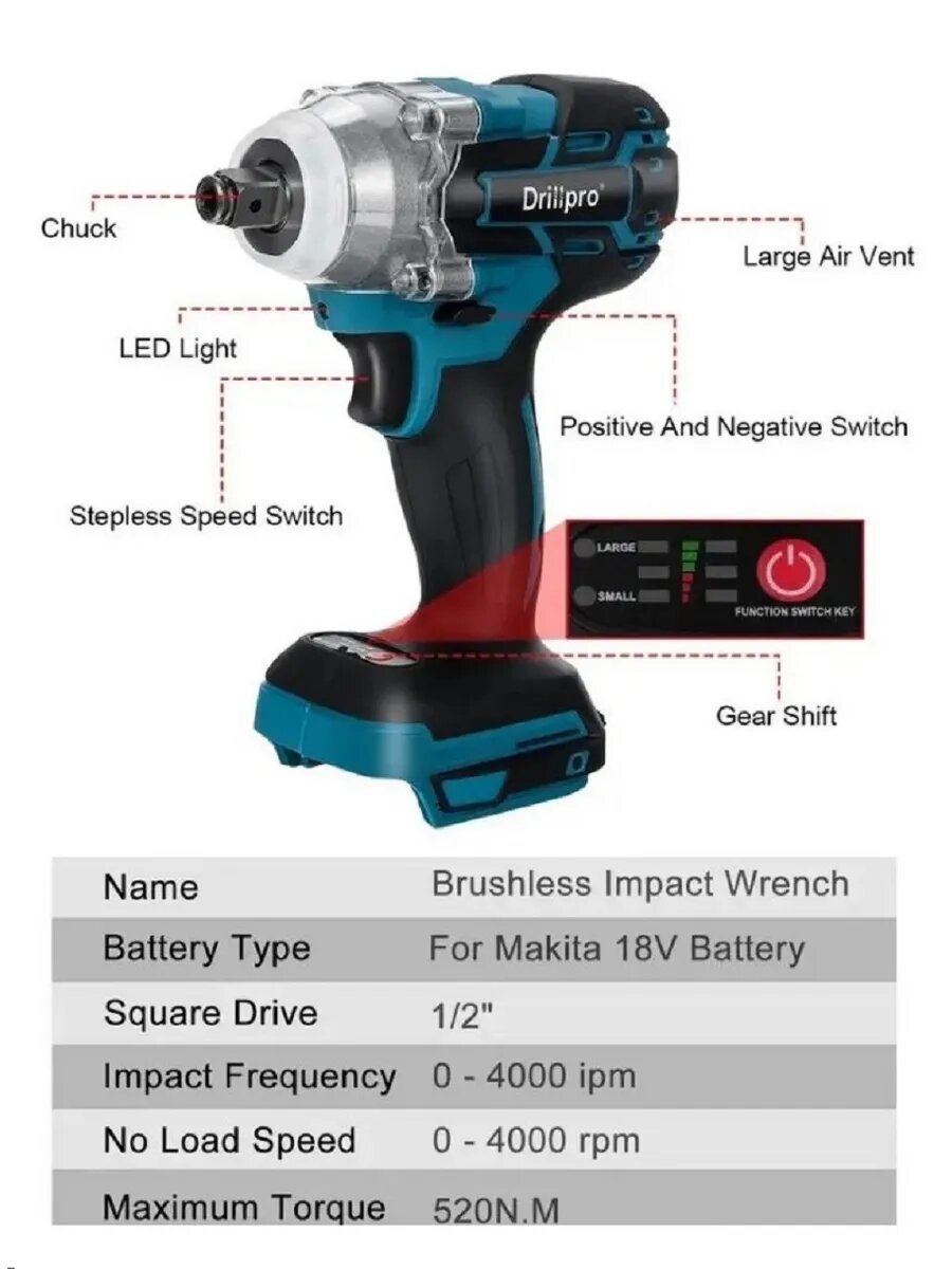 Купить Гайковерт бесщёточный ударный Drillpro без батарей с доставкой по всей России.