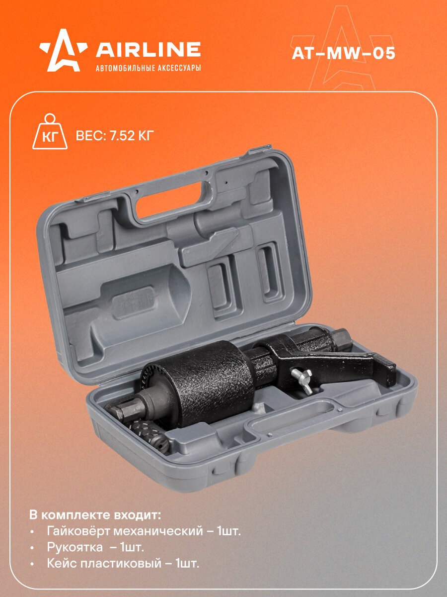 Купить Гайковерт механический двухскоростной 4800 Нм 1″ в кейсе для хранения AIRLINE AT-MW-05 с доставкой по всей России.