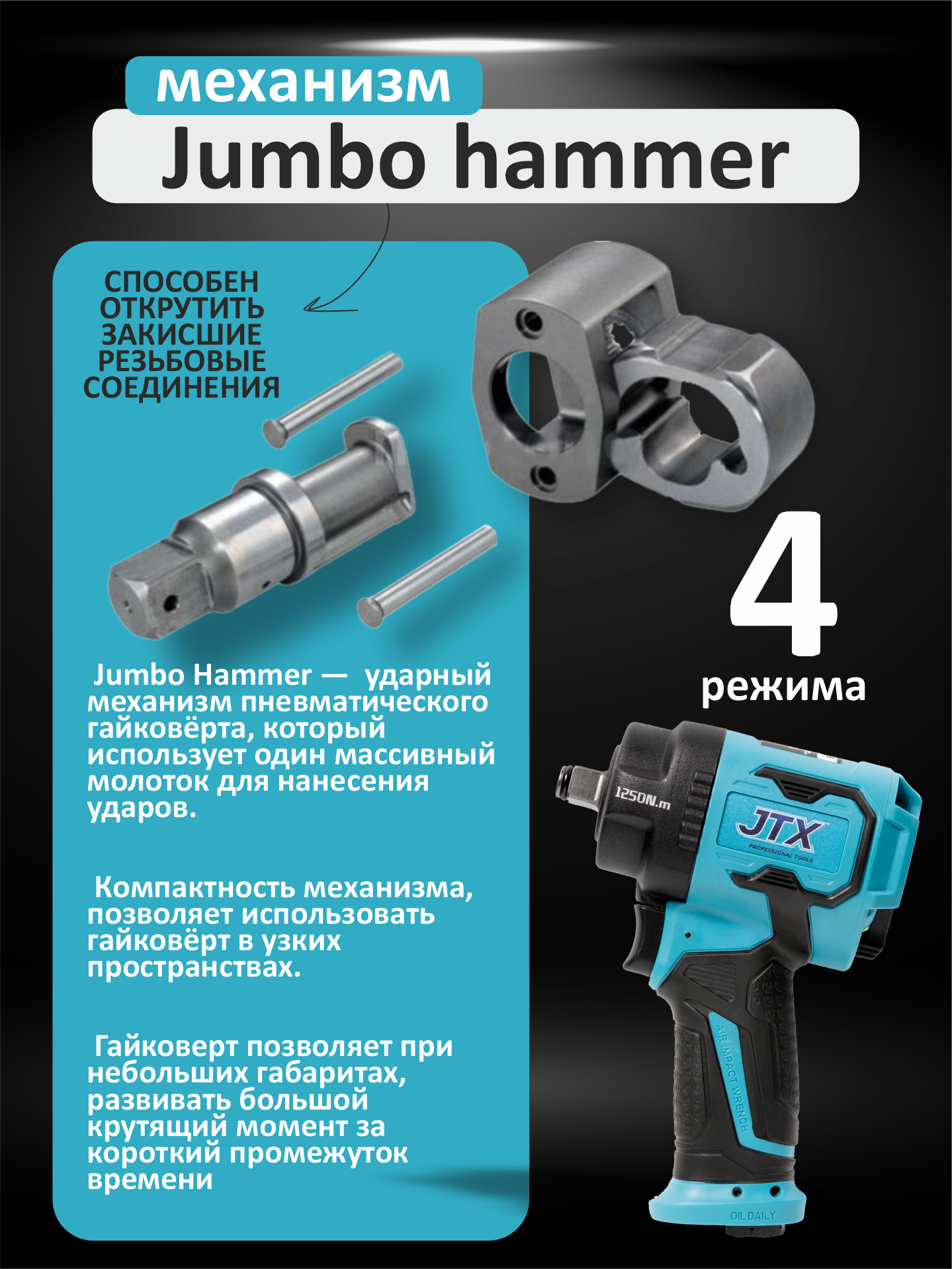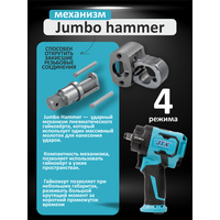 Благодаря ударному механизму TWIN HAMMER инструмент обеспечивает моментальное и мощное усилие, необходимое для работы с тугозатянутыми болтами и гайками.