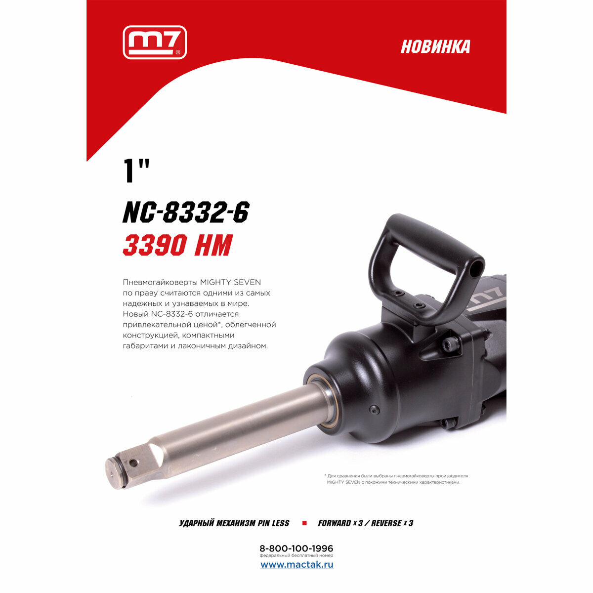Гайковерт пневматический ударный 1″, 3390 Нм, удлиненный MIGHTY SEVEN NC-8332X-6: сравнение цен, характеристики, фото, актуальное наличие и цены.